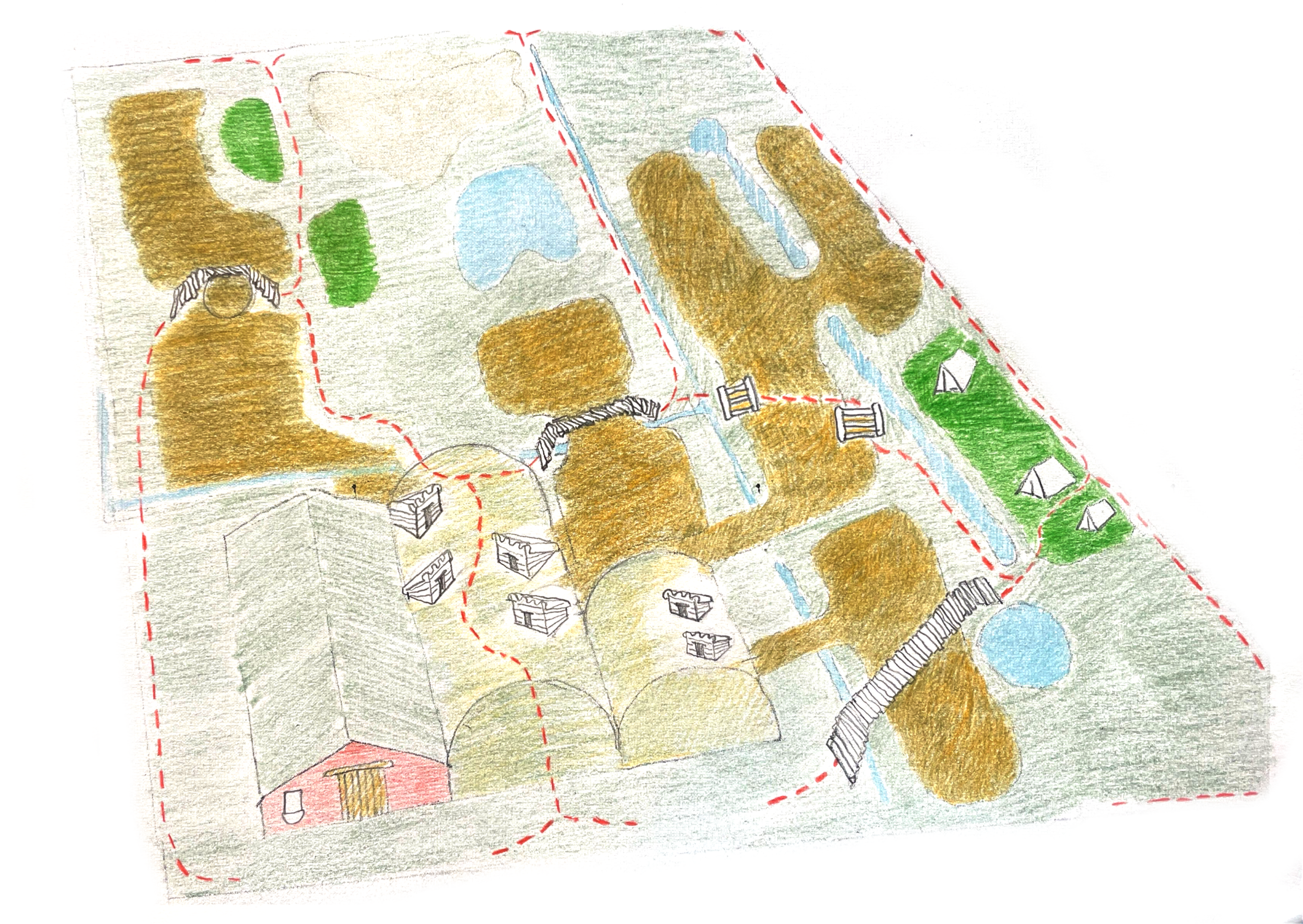 Het verplaatsen, bijmaken en opnieuw inrichten van de hokken. Een nieuwe slaapplek en een nieuwe overkapping maken en een staldak repareren.